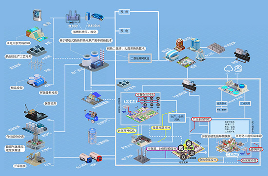 建立冷/熱/水/汽/電/污/廢等資源的多能互補(bǔ)系統(tǒng),實(shí)現(xiàn)產(chǎn)業(yè)園區(qū)一體化集成功能系統(tǒng),通過對能源轉(zhuǎn)換、能源應(yīng)用、余能回收、廢棄物處理各環(huán)節(jié)的整體設(shè)計(jì)、統(tǒng)一規(guī)劃和分級利用,實(shí)現(xiàn)從-271℃—200℃范圍內(nèi)的能源階梯級利用、余能綜合利用、能源高效利用,大幅度提高能源的總體效率,以智慧生態(tài)平臺優(yōu)勢,實(shí)現(xiàn)設(shè)備、功能、資源的多重集約,為客戶提供高附加值的解決方案。